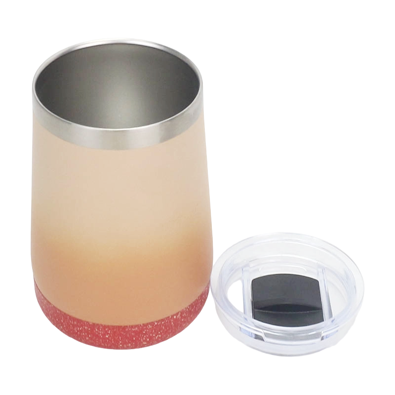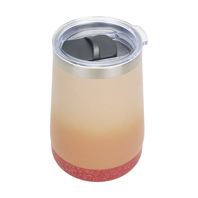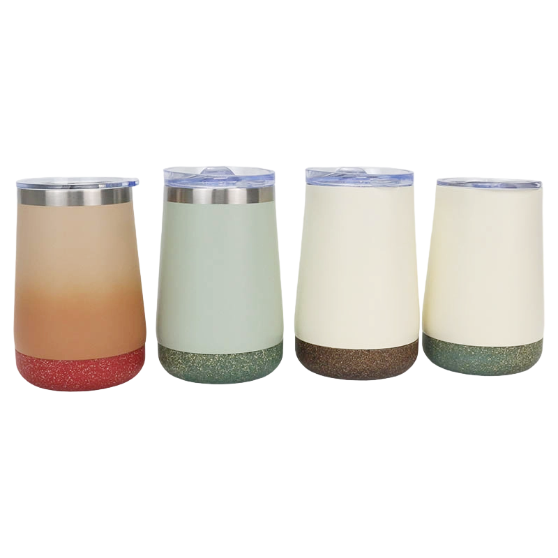 12盎司蛋形保温杯的设计秉承简约自然的美感。它采用柔软的渐变饰面与环保软木底座相结合,提供温暖舒适的握感。底部配有防滑硅胶垫,使其稳定且不易打滑或翻倒。